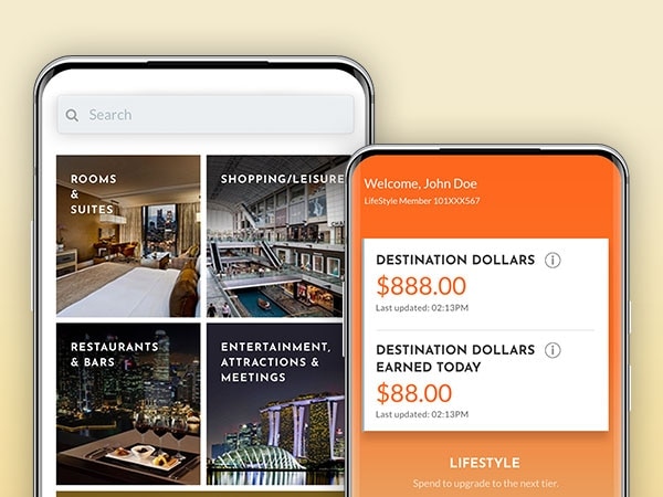 マリーナベイ・サンズ内のショッピングモール、ザ・ショップス アット マリーナベイ・サンズの運河を東南アジアならではの美しいサンパンボートに乗ってお楽しみください。