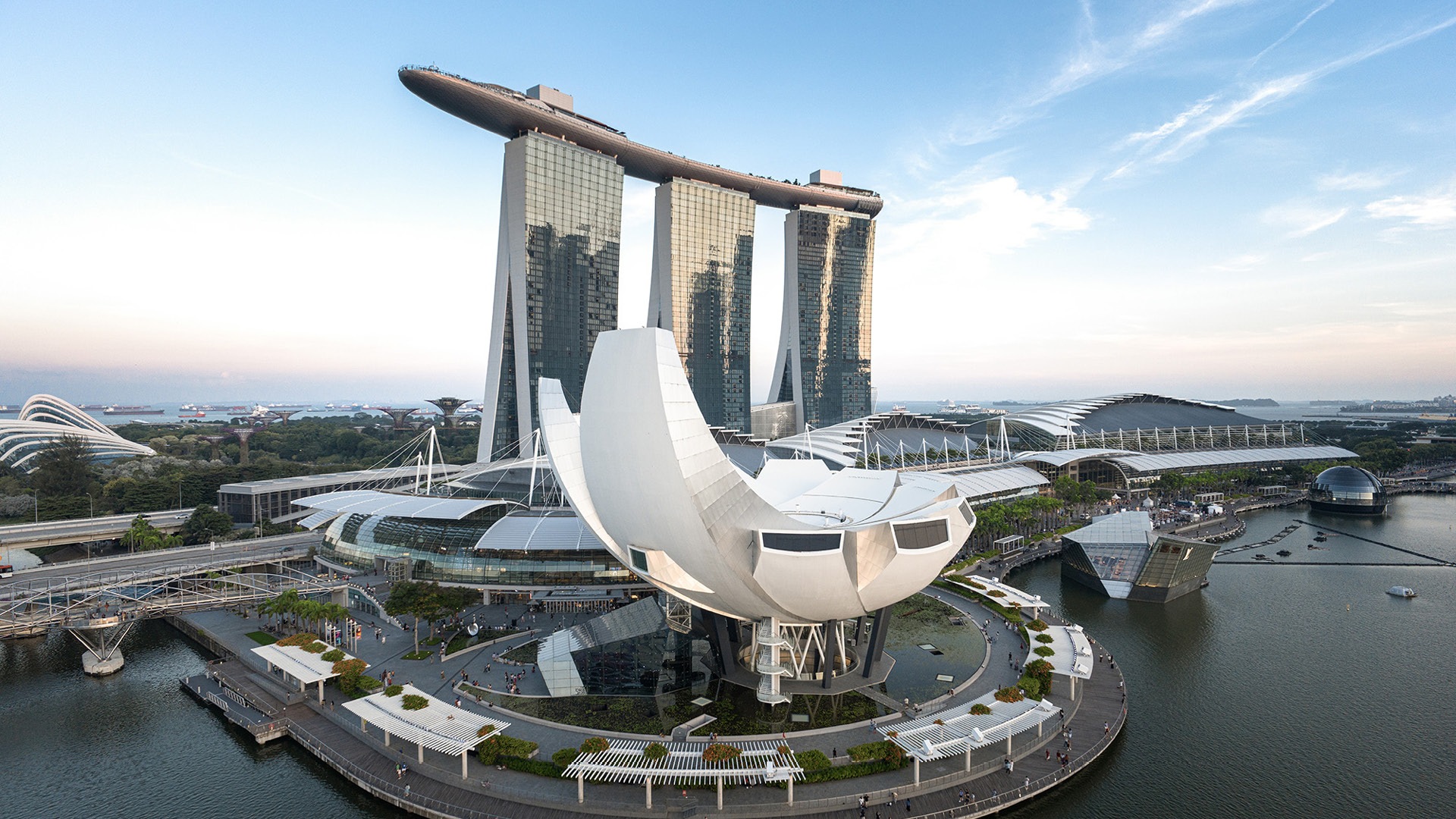 マリーナ湾、ガーデンズ・バイ・ザ・ベイ、シンガポール海峡を一望するパノラマの眺めをお楽しみいただけます。