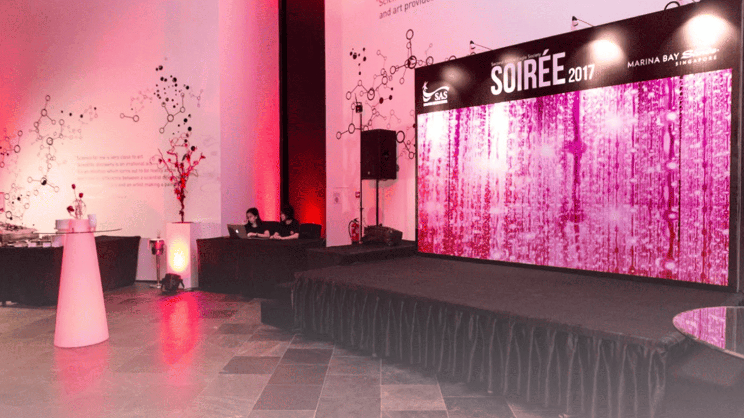 A unique space that features a circulation area and a giant outdoor water feature, and is suitable for cocktail events, product launches and fashion shows.