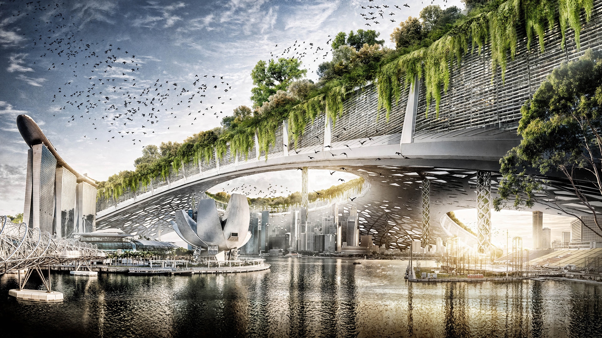 この展示は、長期的思考、環境への現実的な姿勢、集団的責任の倫理によって形成された、未来に対するシンガポール独特のアプローチを反映しています。西洋の大衆文化にしばしば見られるディストピア的なトーンとは対照的に、シンガポールでは未来を「デザインし、議論し、積極的に構築するもの」として捉えています。この感性は、WOHAによる生物多様性に富んだ垂直都市から、Pomeroy Studioの水上農場まで、エキシビションの建築、デザイン、アートのいたるところに織り込まれています。